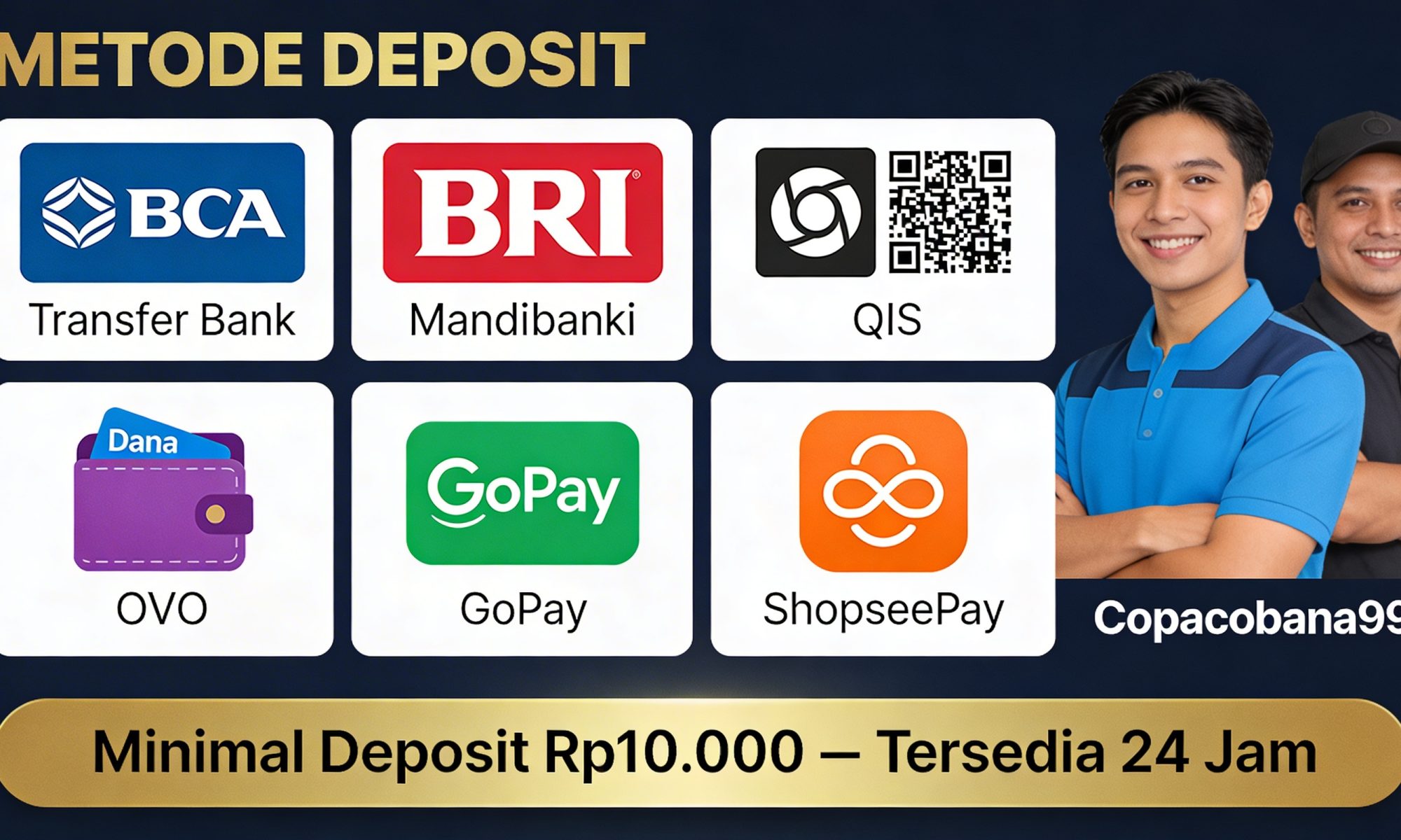 Mau mulai main di Copacobana99 tapi bingung cara deposit-nya? Tenang proses isi saldo di Copacobana99 itu gampang banget dan nggak sampai 5 menit sudah bisa langsung main. Tersedia berbagai pilihan metode pembayaran mulai dari transfer bank lokal, QRIS, sampai dompet digital (e-wallet) seperti Dana, OVO, GoPay, dan ShopeePay. Minimal deposit juga sangat ramah di kantong, cukup Rp10.000 saja kamu sudah bisa akses semua game slot, sportsbook, casino live, sampai togel.
